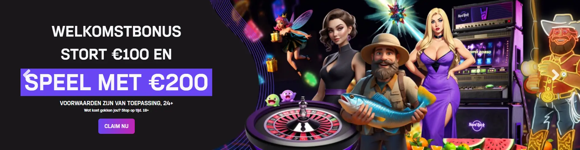 Nieuwe spelers kunnen kiezen uit drie bonussen: een stortingsbonus van 100% tot € 250 (30x rondspeelvereiste), 250 free spins na een inzet van € 25 (25x rondspeelvereiste), of een live casino voucher van € 20 zonder enige rondspeelvoorwaarden na een inzet van € 20 op geselecteerde live spellen.
